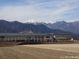 堀金小学校と常念岳